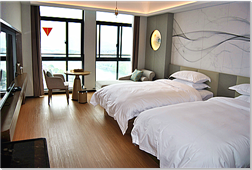酒店客房寬敞舒適每個(gè)房間均配有獨(dú)立衛(wèi)生間、電視、空調(diào)和無線WiFi。均配有中央熱水器,24小時(shí)供應(yīng)熱水,床單被套一客一換。