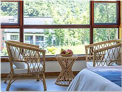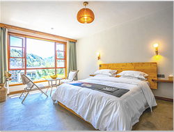 民宿設(shè)施齊全,服務(wù)功能完善,室內(nèi)裝飾到位,客房整潔寬敞,床上用品舒適柔軟,躺在床上可享受山村清晨第一縷陽光的沐;起床推窗盡情的呼吸清甜的空氣,眺望遠(yuǎn)出或隱或現(xiàn)的云霧纏繞在山巒之中,好一幅山村如畫的美景。